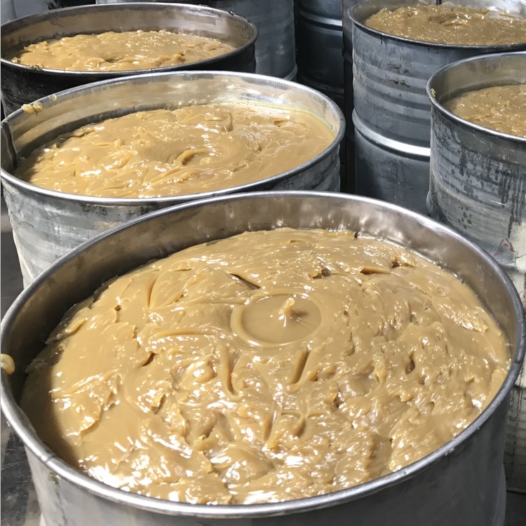 This product is made of animal and vegetable fatty acid calcium soap thickened medium viscosity mineral oil.